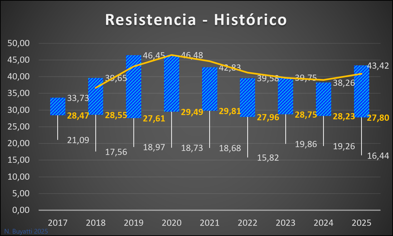 Referencias: Mínimos: ● Máximos: ● Media: ●